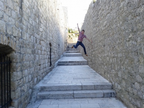 Улочка вдоль городской стены - ни души.. Только парень какой то скачет)![]()