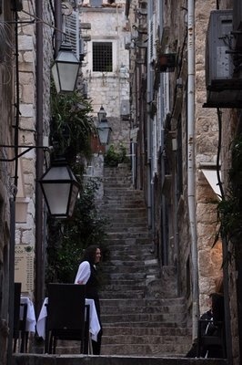 Многие говорят, что в Сплите делать нечего, но позволю не согласиться. Он совершенно не похож на Трогир по своей атмосфере и расположению домов. В нем прямо чувствуются римские истоки, особенно при виде колонн, подпирающих само небо. Собор с колокольней великолепен. Дух захватывает от высоты во время подъема по древним огромным ступеням с хлипкими и низкими перилами. Сразу вспоминается "Бриллиантовая рука" и понимаешь, что в бесконечном лабиринте переулков заблудиться проще некуда. Всю старую часть Сплита можно обойти за пару часов неспешным шагом и обязательно посидеть в уютном кафе на одной из улиц, можно прямо на ступенях, или на балкончике крепостной стены с видом на море.