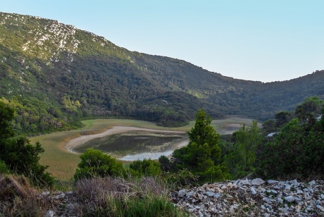 Остров Млет. По рассказам в путеводителе здесь Одиссей провел 7 лет перед тем, как вернуться к жене. Не знаю, что там было с Одиссеем, но остров действительно очень красивый. Здесь много гор и леса. Почти весь берег - скалы, уходящие в море. Это мы уже позже поняли. Млет - самый южный из крупных островов Адриатики. Это я википедии вычитала.