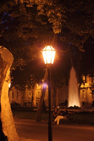 Ну вроде все насчет Горного града, центр, однако, на нем не заканчивается. Вот парк с фонтанами, ночью выклядит впечатляюще: