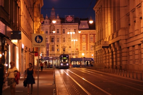 Трамвайчики (сзади центральная площадь - пл. Бана Елачича):