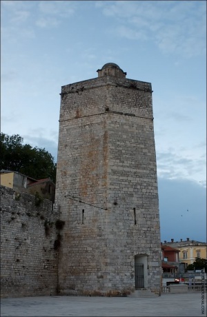 С утра, пока все спали, я решил ещё раз прогуляться по городу, чтоб закрепить его в памяти. Погода, к сожалению, была не фонтан... А вот и собор святой Анастасии. Это один из семи хорватских храмов, носящих гордое звание "малая базилика". Он даже претендует на включение в список ЮНЕСКО, но пока только претендует. Здание построено на месте более ранней базилики в 12-13 веках, а внутри него хранится часть мощей святой Анастасии Узорешительницы