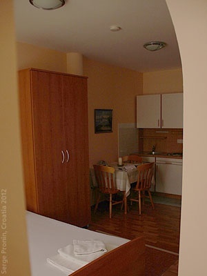 А вот и наш пансион Ikar. Наш-то наш, и открыто, а людей по-прежнему никого. Хорошо, мобильник на двери написан. Вызваниваю Марко. И он приходит через пару минут. Марко — очень добродушный и отзывчивый, тут же уточнил отлет, пробил по интернету еще раз даты, уточнили отбытие.
