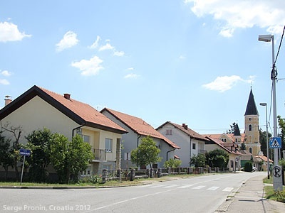 Разумнее было бы бронироваться в Загребе, если знать заранее о транспортной изоляции городка (самостоятельно уехать из него можно лишь на такси, автобусов не было замечено ни одного). А с другой стороны — когда бы еще саму Горицу посмотрели в таком поперечном разрезе? Сначала думалось по гугль-картам, что это какая-то жуткая деревушка, совершенно ничем не примечательная. Однако на самом деле деревушка оказалось очень даже приятным маленьким городком. Пробегали мы его быстро, т.к. хотели скорее добраться до гостиницы, но все увиденное вполне приглянулось даже в экспресс-режиме, во всяком случае показалось привлекательнее первых взглядов на Загреб. Магазинчики, домики, музейчик даже какой-то. И бац, вдобавок перед нами выросла та самая церковь Возвещения Девы Марии, которую видели на хорватских сайтах.