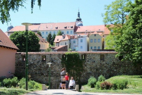 Там очень хорошо. Спокойно, тихо. Виды на старый город, на домики под красными черепичными крышами, стену со старой кладкой. Очень приятно было там посидеть - много тени и игровая площадка для детей. К парку примыкает школа, за детьми на прогулке интересно наблюдать.