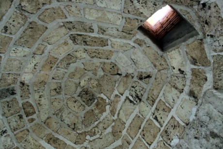 Последний этап, мы уже в башне, теперь два метра вверх по пожарной лестнице сквозь узкое отверстие - я чуть не застряла с рюкзачком