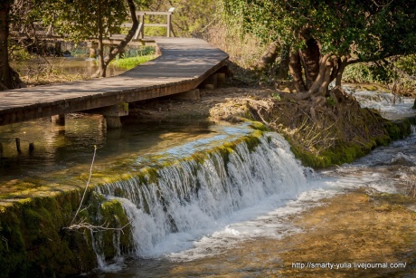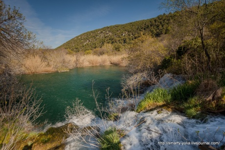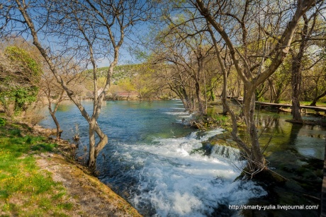 В прошлый рассказ о Хорватии, я остановилась на нашем посещении Плитвицких озер, откуда мы решили сбежать на юг! Быстро перебронировав отель на букинг.коме, по прибытию оказалось, что наш выбор пал на отличный вариант! Но что немаловажно, в 15 минутах езды от нового отеля находится другой удивительный парк с водопадами и озерами - Крка! Куда мы и отправились на следующее утро! Здесь уже на деревьях были зеленые листочки:)) Но все равно официальный туристический сезон в регионе лишь с 1 апреля, поэтому мы не смогли посетить все уголки парка, например, монастырь на острове Висовац.