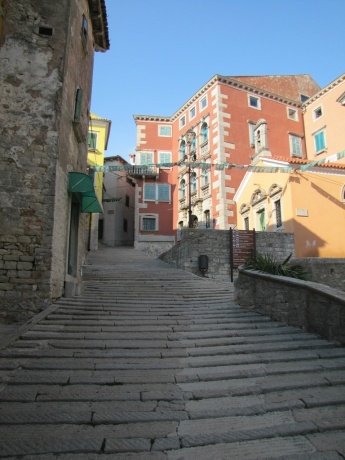 Машину по дури припарковали внизу и поперлись по жаре наверх. К самой вершине холма, к центральной площади города, идёт самая длинная лестница в Истрии — она насчитывает 1052 ступеньки.