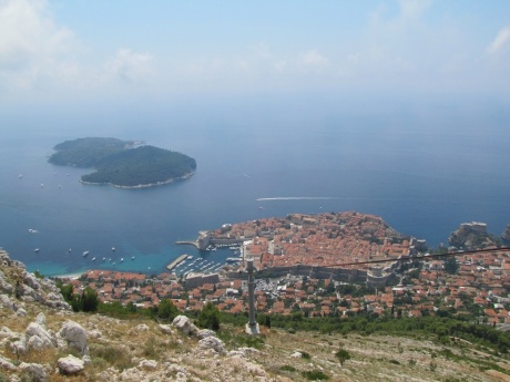 С утра гуляли по Дубровнику. К 12 часам пришли домой, ребенок спать должен. Пока семенйство пребывало в сиесте, я скатался на фуникулере на гору. Вначале подумывал подняться туда пешком или скататься на машине, но жара отбила у меня это желание и пришлось разориться на 87 кун (путь туда - обратно). Цена билет в один конец - 50 кун. Вид с горя конечно хороший, но не намного лучше чем с нашего балкона.