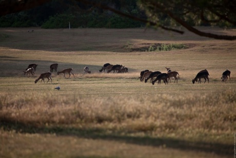 Оленихи и детеныши. Могут пастись вместе с баранами и антилопами или косулями, но самцы оленей пасутся отдельным мужским клубом.