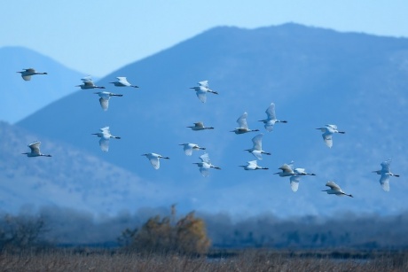 Малая белая цапля, Egretta garzetta, Little EgretМалые белые цапли неожиданно взлетали целыми стаями из-за кустов еще до того, как их можно было увидеть. Зато они весьма выгодно смотрятся на фоне албанских гор, на границе с которыми и расположена Солана.