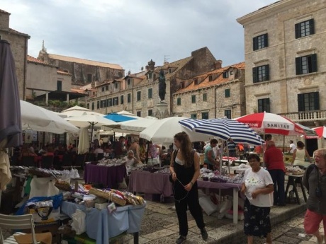 Закончив «глазеть» на красивые картинки, мы, медленно переставляя ноги, углубились в центр старого Дубровника по узким крепостным улочкам. Именно узость крепостных улиц спасала нас от жара полуденного солнца, да ещё дыхание Адриатики, приносящее морскую свежесть. Я не скажу, что в глубине крепости мы задержались надолго, на самом деле, осмотрев знаменитый источник (Большой фонтан Онофрио) и рыночную площадь, мы зашли в местный океанариум, а потом нас потянуло к морю. В старом порту полюбовались корабликами, вышли на мол, откуда хорошо просматривается остров Локрум с его павлинами. Насчёт павлинов, это я так, для красного словца, из старого порта этих нарядных ворон рассмотреть не реально, если только в телескоп.