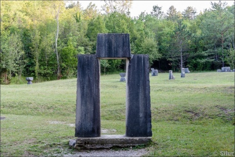 Каменными воротами в виде глаголической буквы Л посетителям аллеи открывается вид на тропу с расположенными вдоль неё скульптурами, образующими надпись ISTARSKI RAZVOD — название истрийского свода законов, принятого в 1275 году. Источник.