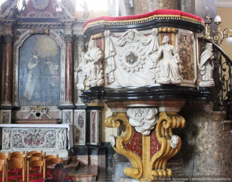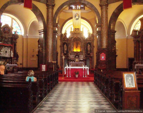 В интерьере церкви расположены мраморные колонны, которые удерживают над собой арки
