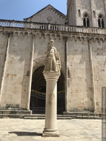 Напротив входа в Кафедральный собор расположена колонна со святым Лоуренцо (Лаврентием)
