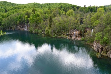 Парк Плитвицкие озера имеет два входа, на Нижние и на Верхние озера. Попасть с Верхних на Нижние еще можно либо пройдя пешком вдоль длинного озера Козак, либо проплыв по нему на бесплатном катере. Существует гиганское количество маршрутов, начиная от 1,5 часов - маленький кружок, до объеденяющих все озера (6-8 часов пути). Мы купили билеты на два дня, потому решили неспешить и пройтись сначала сколько сможем по одной части, а потом по другой. Случайно мы начали со второго входа, сразу на Верхние озера (пропустили поворот на первый вход, ктож знал что такое Ulaz?...) От парковки надо пройти минут 15, спустится к озеру и переправится на другую сторону на пароме (они идут каждые 10 минут, туда-сюда).