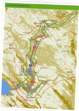 Мы успели посмотреть только самый популярный – Скрадинские водопады (Skradinski buk). К ним можно подъехать на машине (см. карту), но мы об этом узнали позже, и плыли на прогулочном кораблике из Скрадина, впрочем, цена на билеты одна и та же. Из остальных достопримечательностей - монастырь на острове Visovac, водопад Roski slap, масса разного рода развалин.